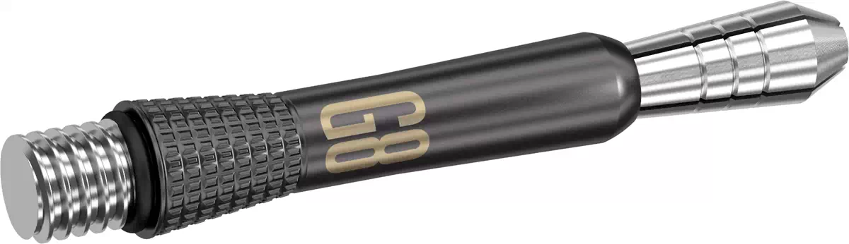 The Power 9Five Generation 8 - created and designed in collaboration with the 16 X World Champion. The result is a high precision 95% tungsten barrel with the perfect weight and balance. The Barrel offers CNC milling throughout, an overlay of Black PVD performance coating and hand sandblasting for incredible texture. The barrel is re-machined to create a vibrant silver ring effect on the radial grooves at the front and is further complemented by the Generation 8 shaft which features additional CNC milling to add grip at the rear. Complete with signature Taylor Flights & Swiss Point Diamond Pro.